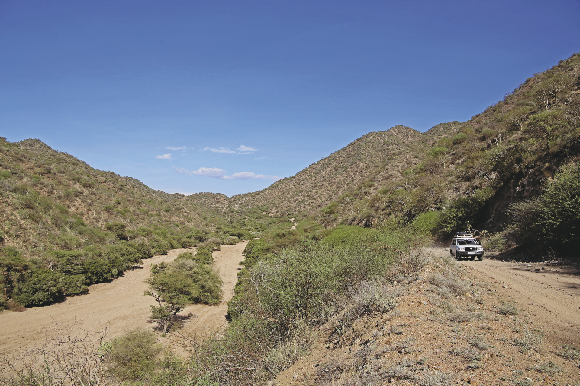 Der Transport in Südäthiopien erfolgt in nicht klimatisierten Geländewagen mit Allradantrieb. Drei bis vier Reisegäste und ein Fahrer teilen sich ein Fahrzeug.