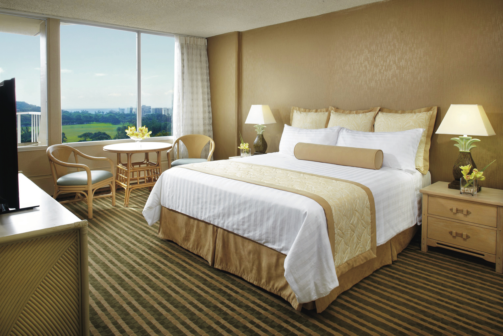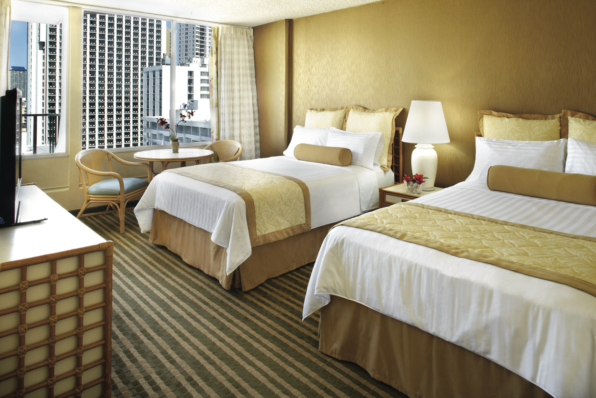 Die 315 geräumigen Zimmer sind komfortabel eingerichtet, verfügen über Klimaanlage, LCD-TV, Telefon, Kühlschrank, Safe und Fön (auf Anfrage). Die meisten Zimmer haben einen Lanai und Blick auf Diamond Head.