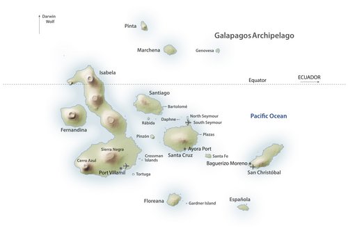 Der Insel-Archipel Galapagos liegt ca. 1.000 Kilometer vor der Küste Ecuadors direkt am Äquator. Er umfasst insgesamt 19 größere und mehr als 40 kleinere Inseln. Er ist ein einmaliger Naturraum mit ganz besonderen Umweltbedingungen und hat einzigartige Tier- und Pflanzenarten hervorgebracht.